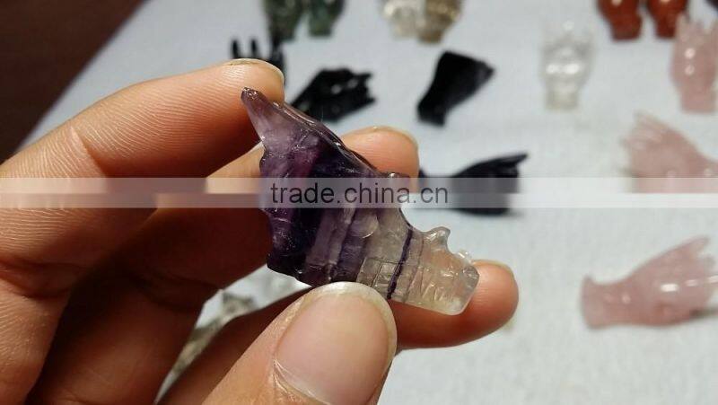 Wholesale Small Size Natural Crystal Stone Carving Dragon Skull for Decoration