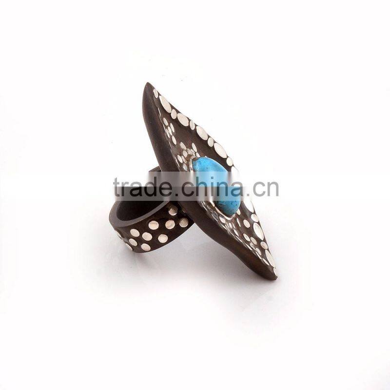 Handmade Ebony Wood Ring With 925 Sterling Silver With Turquoise Oval