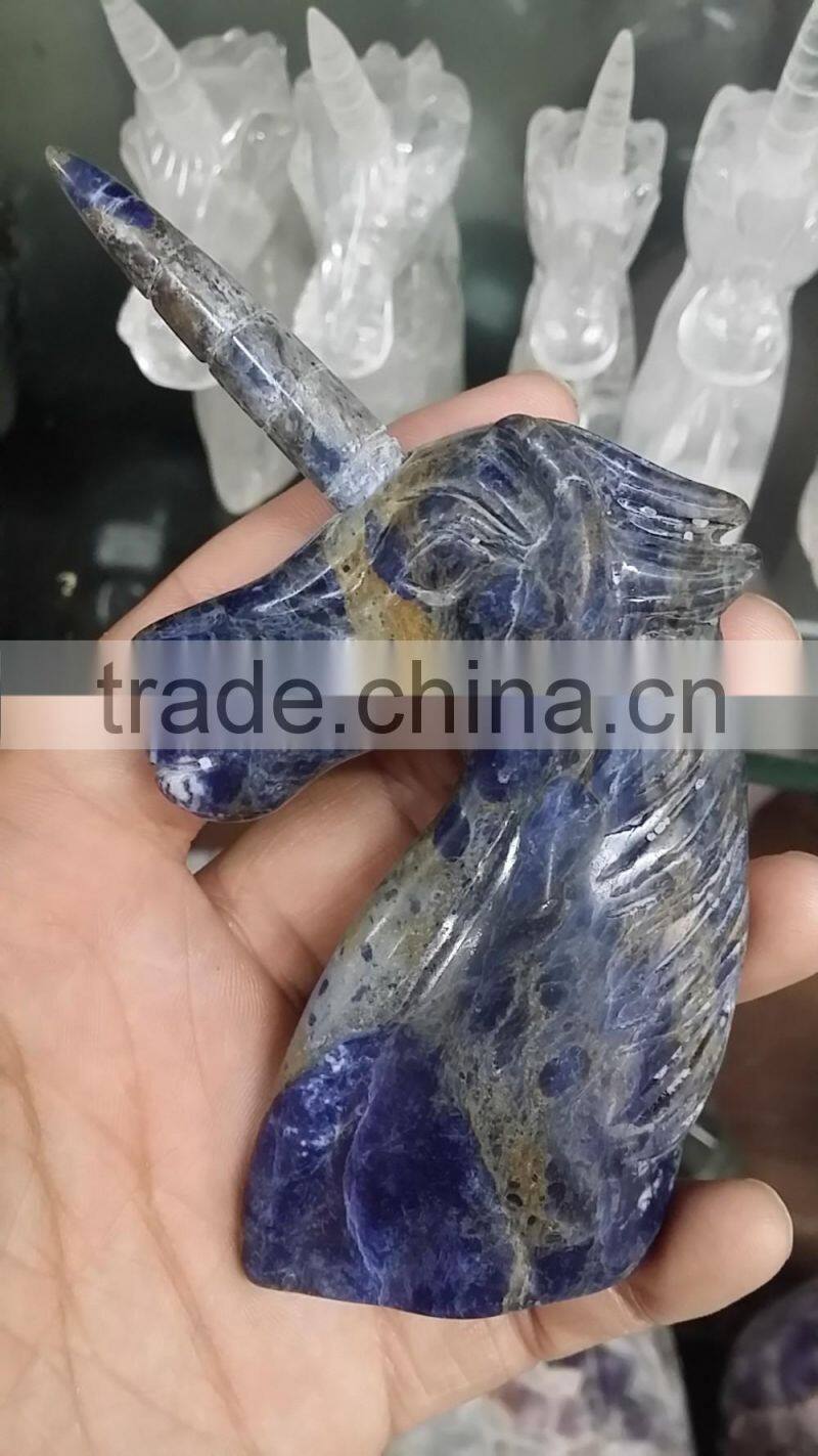 Hand Carving Natural Blue Stone Ore Unicorn for Sale