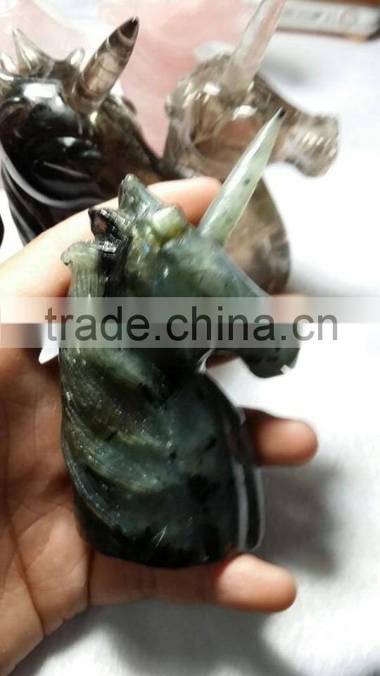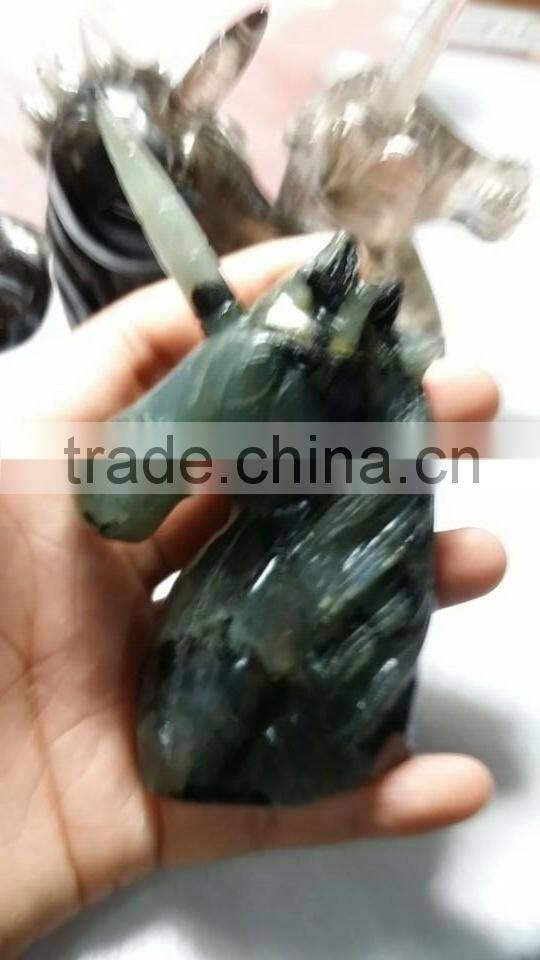 Natural gemstone hand carved labradorite crystal unicorn,