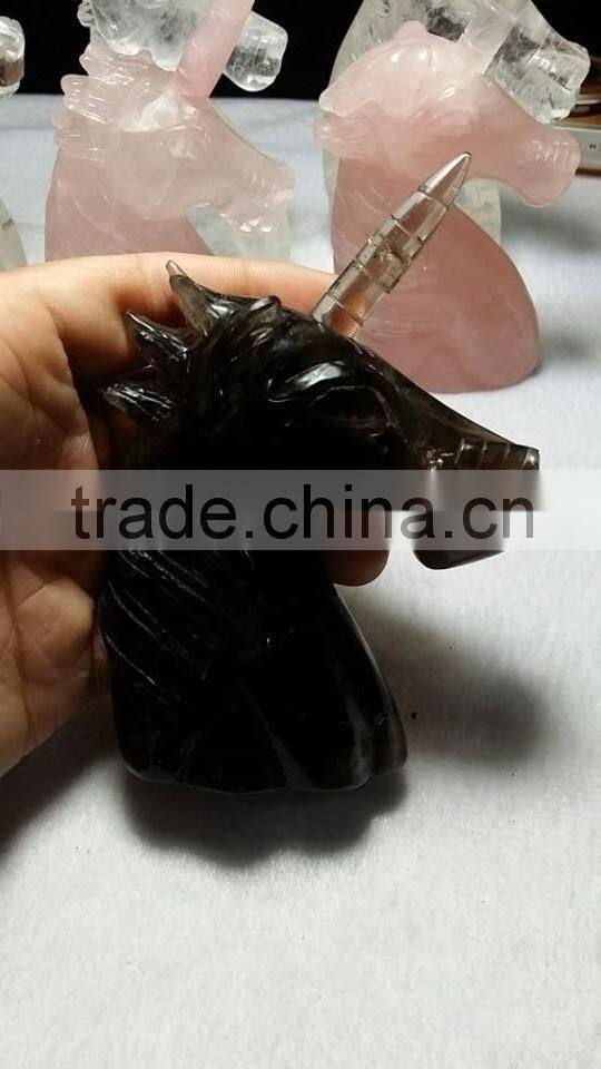 Natural Deep Smoke Quartz Crystal Unicorn Hippocampus Manual Carve for Sale