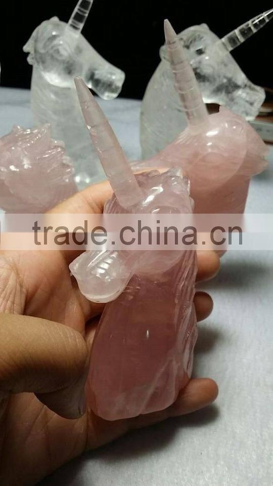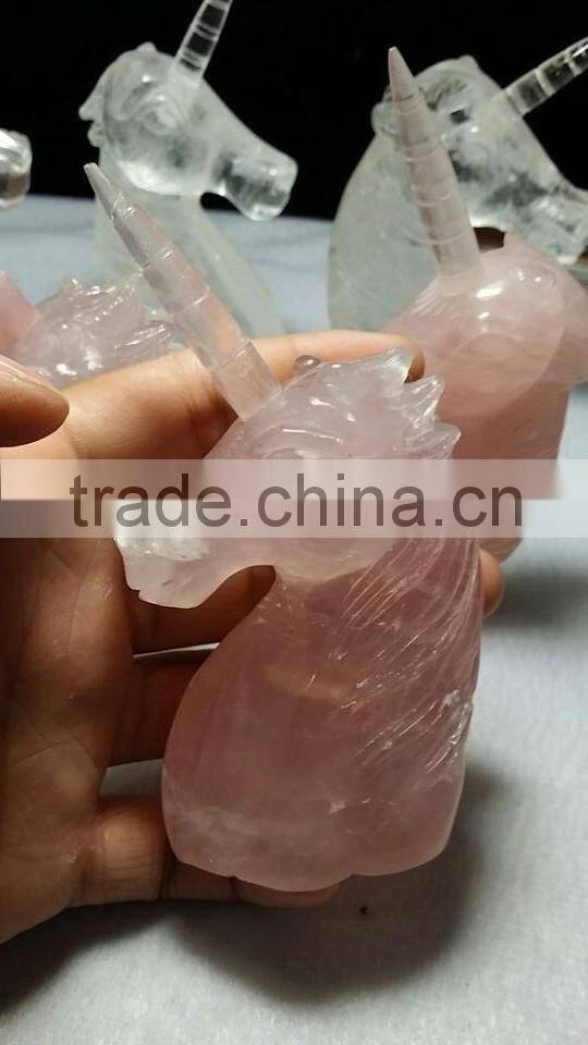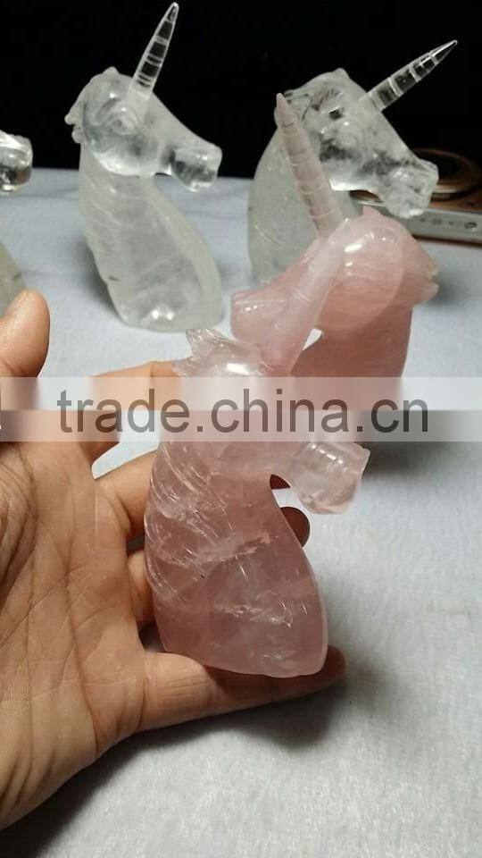 Hand Carving Natural Rose Quartz Crystal Unicorn For Home Decoration