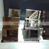 A: We only use quality raw materials, including Stainless Steel, Acrylic material, Wood or MDF panel, Leather