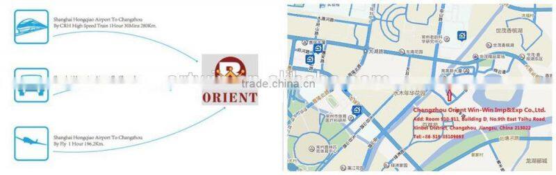 1.By plane, from Changzhou airport to our office is about 20mins by car
