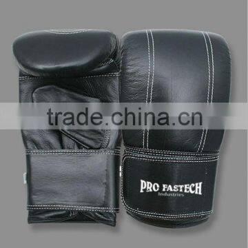 Cowhide and synthetic Boxing / Punching / Training cowhide leather mitts. This performed curved finger provide a comfortable and easy fit.Two row heavy nylon thread contrasted stitching.The double layer padding laminated with foam. Colors: White,Black,Blue,Red Sizes: S thru XL