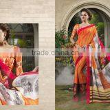 Zari Blouse and Orange Color Womaniya Designer Sarees Collections