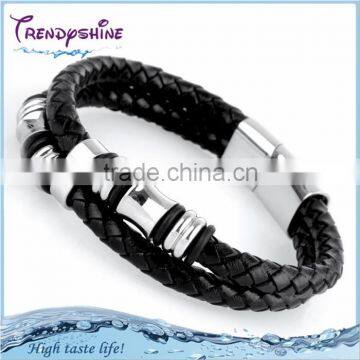 OEM manufacturer men's stainless steel black magnetic wrap leather bracelet
