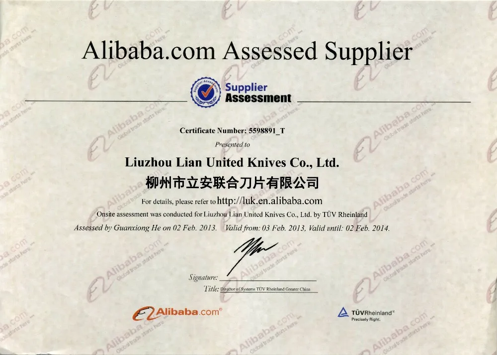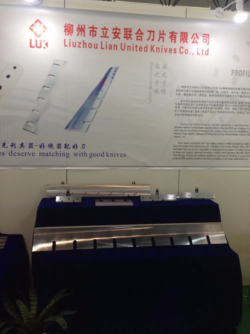 Liuzhou Lian United Knives Co., Ltd. locates in Liuzhou City, Guangxi Province, China. It has been specializing in manufacturing machine knives/blades for 13 years since 2003. Covering an area of 3,500 square meter, having 15 professional product lines and more than 50 workers, LUK has been an influential OEM manufacturer supplying precision and reliable knives/blades especially for food industry, packaging & printing industry, plastic & rubber recycling industry, wood industry etc.