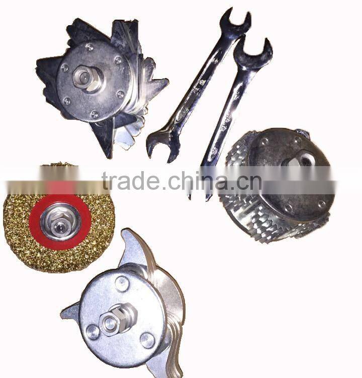 Rugged,lightweight portable electric scaling machine suitable for continuous heavy duty descaling Particularly effective for removing rust.stubborn scale , old paint and epoxy from all surfaces; even from irregular surfaces where large of descalers cannot reach . Fitted with rubberized wheels it comprises a flexible drive shaft, set of tool head.