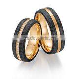 18K Yellow Gold Plated Two Tone Carbon Fiber Ring Black Titanium Engagement Gold Couple Ring