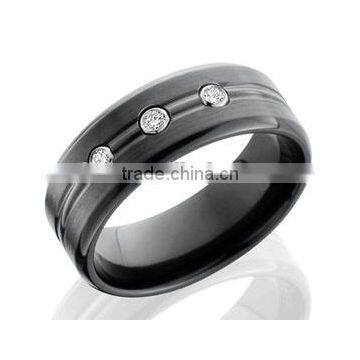 Men's wedding band in black zirconium black titanium ring with simulated stones