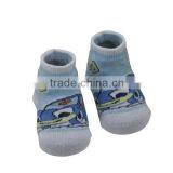 GSB-33 Wholesale Blue Cotton Animal Infant Socks Non Slip Socks With Turn Over Cuff