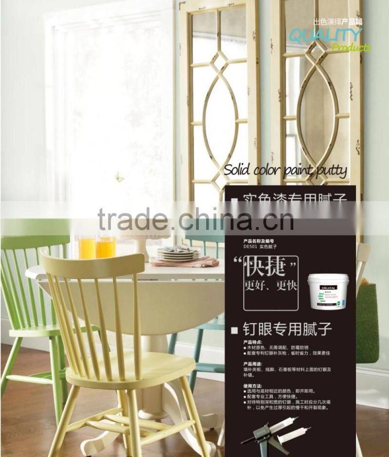 Solid color putty can be used for filling wood eye to reduce primer’s dosage when make Chinese color effect, it also can be adjustable plate color for full or eye patch.