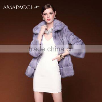 Fashion luxury light purple real women mink fur coat for sale