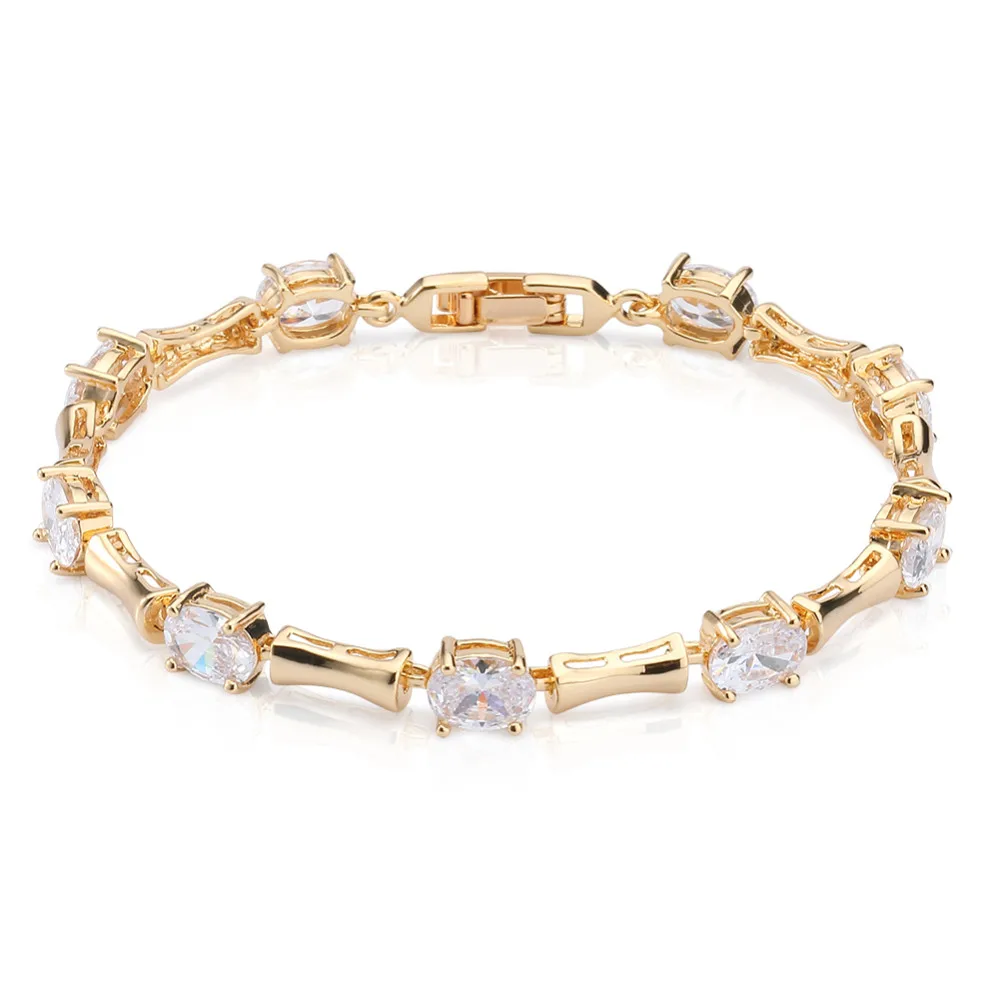 China Gold Jewelry Factory Women's Clear Princess Cut Crystal Zircon Diamond Tennis Bracelet