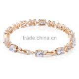 Fashion Gold Jewelry Dubai India Gold Plated Princess Cut Sapphire Crystal Bracelet for Wedding Engagement Anniversary