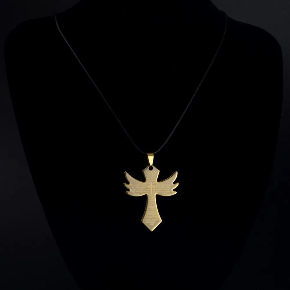 Fashion Stainless Steel Jewelry Yellow Angle Wing Cross Necklace Pendant for Boy Girls