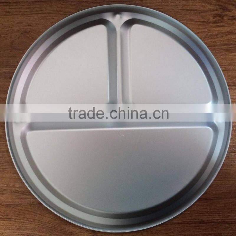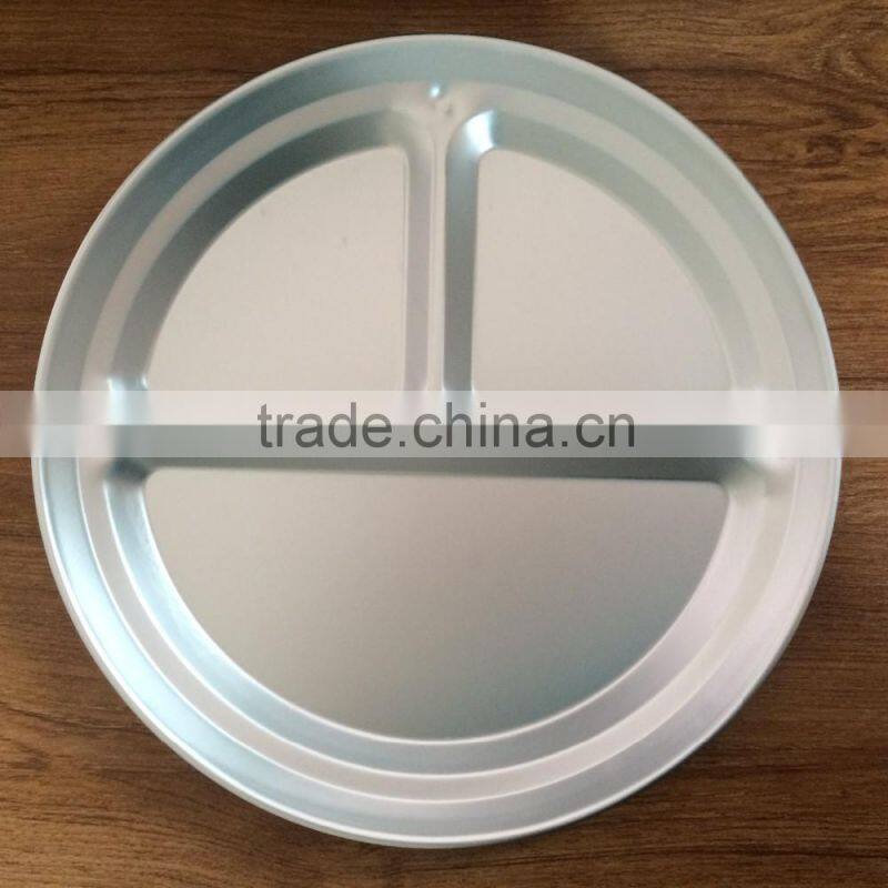 Round Aluminum 3 Compartment Plate Fast Food Tray for School Canteen