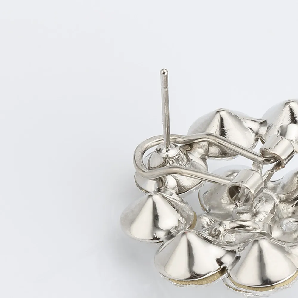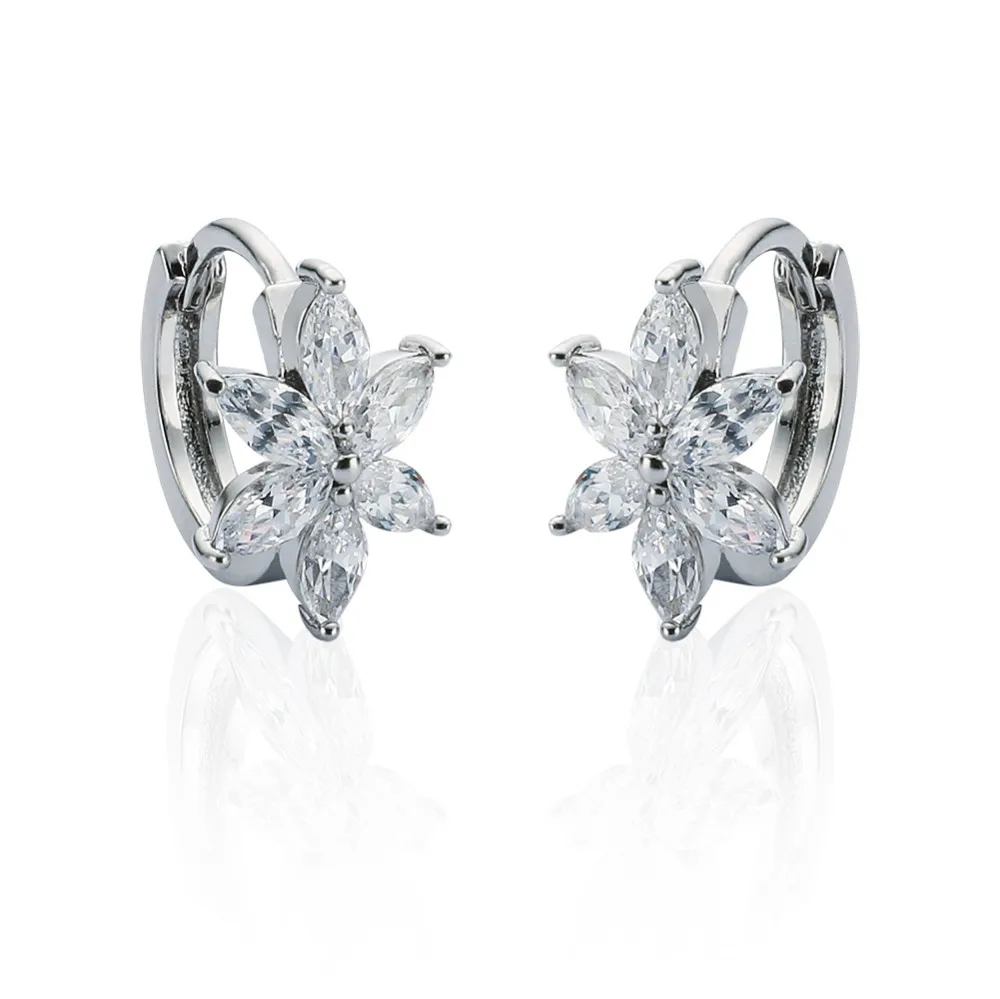 Fashionable Flower Shape Silver Color Cubic Zircon Stud Earring Valentine's Gift for Her