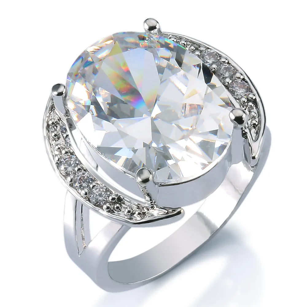 Sparkling Big White Cubic Zircon Ring 18k Gold Plated Jewelry for Wedding Party Size#6,7,8