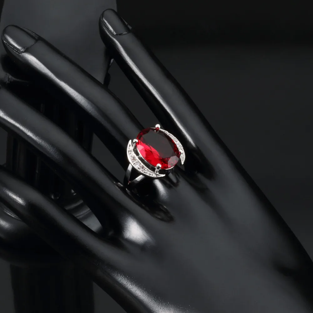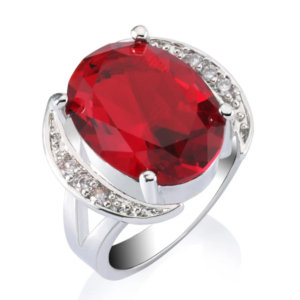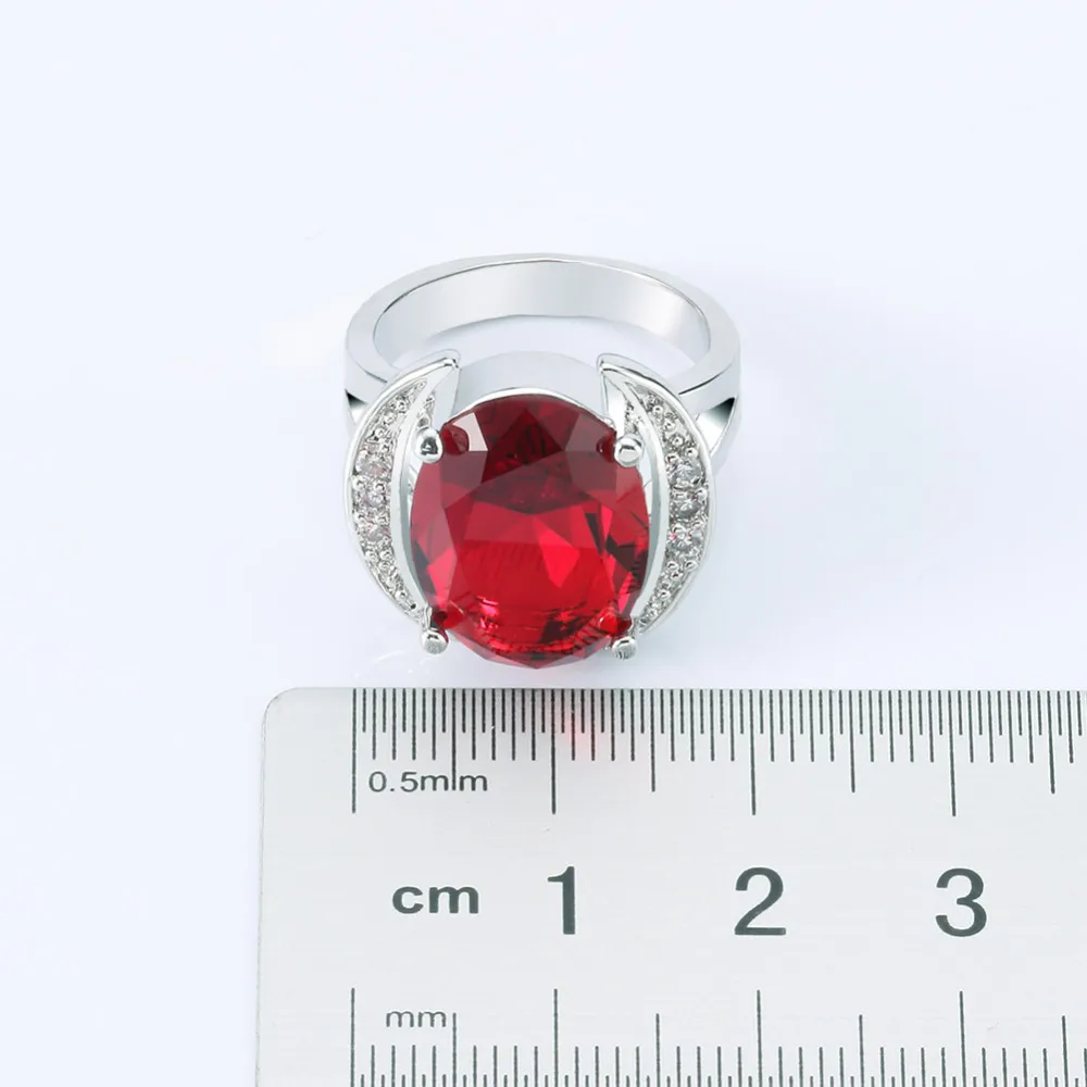 Home > Products > White Gold Plated Jewelry > Women's Gender Bling Bling Oval Cut Red Cubic Zircon Ring 18k Gold Plated Jewelry Bridal Ring