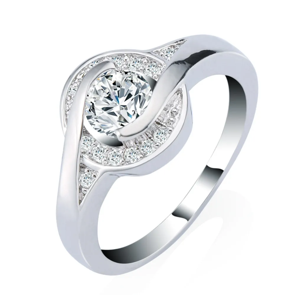 Hot Selling Unisex Whitegold Plated Ring Stud w/ Precious Stone for Engagement
