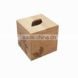 Wood Square Tissue Box With Laser Logo, Tissue Holder With Carved Pattern