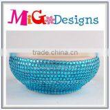 Wholesale And OEM Art Craft Factory Manufacture Blue Rhinestone Ceramic Cat Bowl For Food And Water