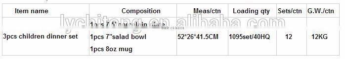 3PCS Ceramic Kids Set , Children Porcelain Tableware