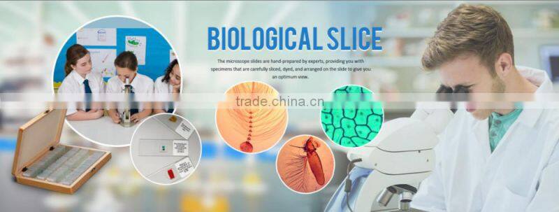 We have more than 3000 kinds of prepared slides,This is a 17-piece very nice prepared slides for Indonesia school .This is used for primary,middle,high schools. The slide was cut subtly without any mark, break or constrict.Our slides are in 26 mm x 76 mm (1x 3 inches) size, best quality glasses with fine ground edges. The application of special staining techniques guarantees a clear, multi-colored representation of all tissue structures. We meet all scientific requirements needed in the industry / market.our slides come in sets or individual, presented in slide storage boxes and are fully labeled.