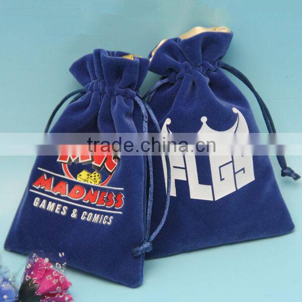 Promotional Blue Drawstring Round Velvet Jewelry Bags