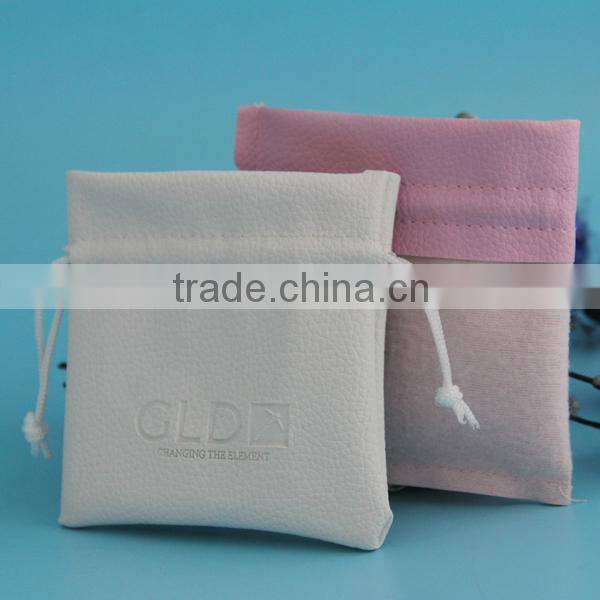 Top Selling High Quality Emboss Logo Leather Jewelry Pouch , Faux Leather Pouch