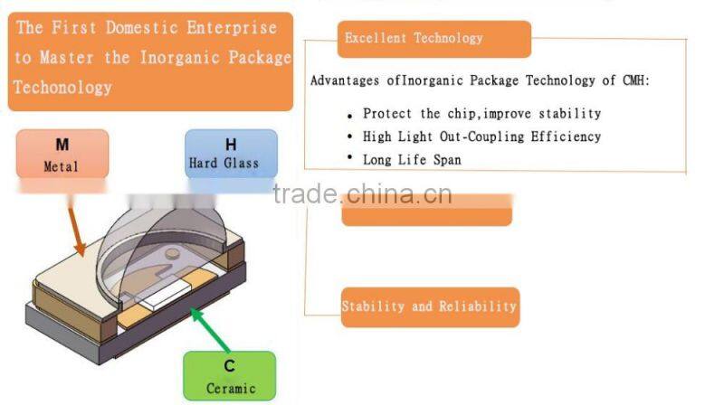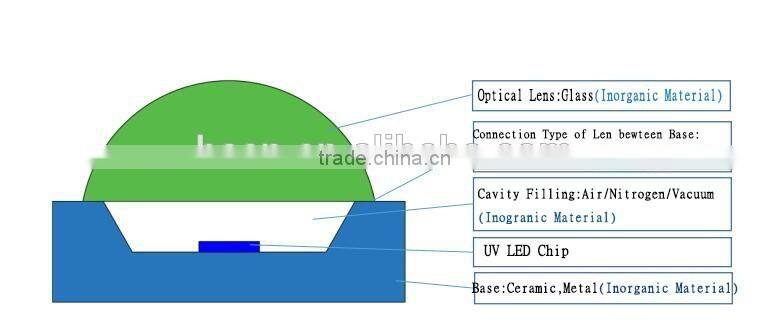 It is a kind of package technology which adopts ceramic,metal,hard glass as package materials. It is suitable for vacuum encapsulation,especially suitable for ensuring reliability of deep UV products.