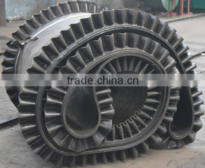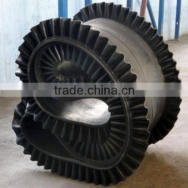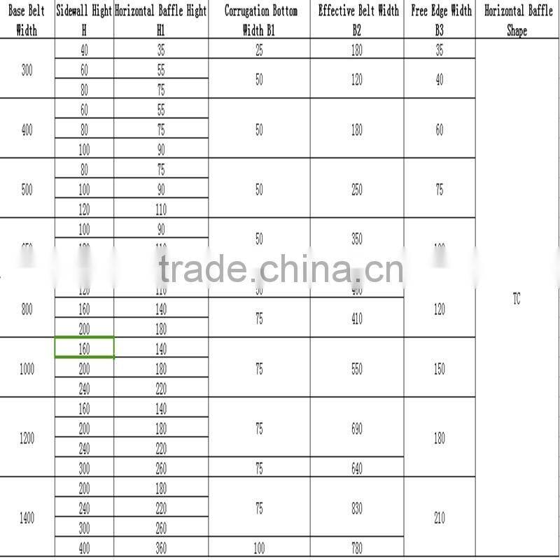 Corrugated sidewall belt generally is used with corrugated wall conveyor together, and also used with general belt conveyor. It is suitable for the horizontal, short distance condition. The angle will be not less than 30 degrees.