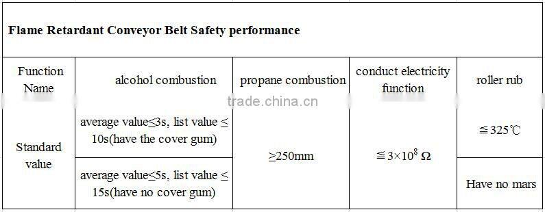 Safety performances of PVC PVG whole core fire resistant coal mine conveyor belt :
