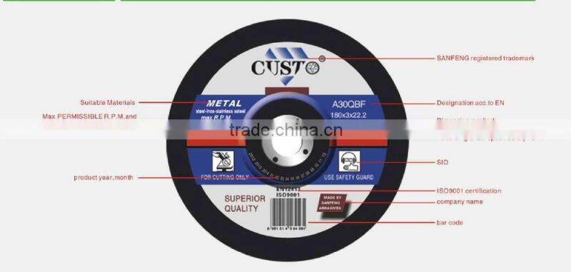 T42 Depress Center Abrasive Cutting Wheel, for Stainless Steel Cutting Wheel of China Manufacturer Sanfeng