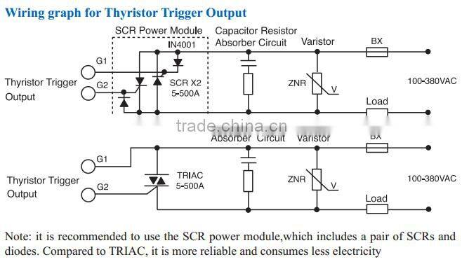 K1:Single zero crossing trigger output (100-380VAC, can trigger thyristor 5-500A)