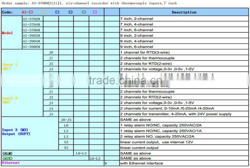 Yudian AI-3702M/3704M/3706M Multi channel temperature data logger manufacturer model code: