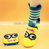 Factory Custom High Quality 0-3years Old Baby Ankle Socks, Yellow Color and Red in the Bottom