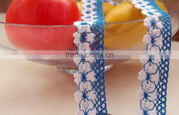 Home > Products > Lace trimming > Blue - White Cotton Lace Ribbon Accesory C250104