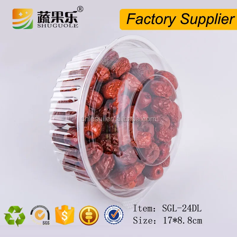 Customized Disposable Plastic Food Packaging Round Box With Lid 600g