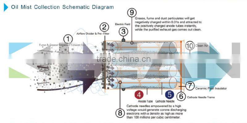 1. Maximized corona discharging uniformity & electric field intensity, hence maximized purification efficiency. Superior mechanical strength compared with other conventinal electric fields, which are apt to get deformed easily during the maintenance and cleaning procedures.