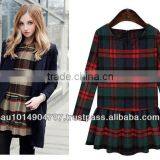 2014 KOREAN CHECK TUNIC LOOSE FIT WOMEN COAT 9358