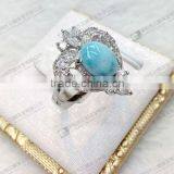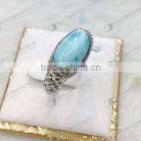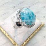 Hot Sale Larimar Ring,8x10mm Larimar Oval Cabochon Inlayed