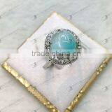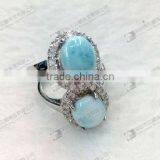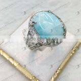 Gemstone Ring,Larimar Ring Oval Cabochon 14x16mm