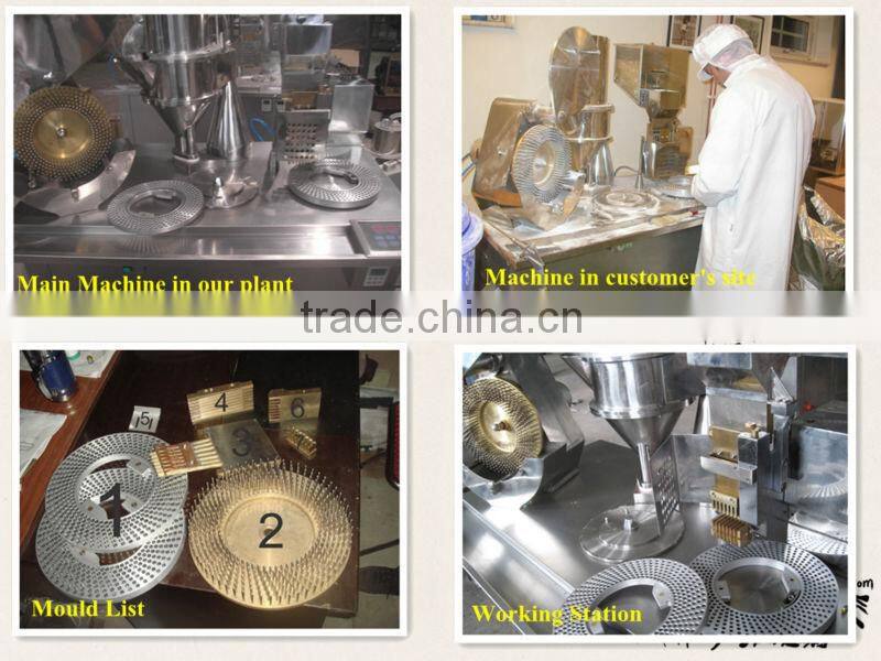 4.The machine is whole Body stainless steel. Capsule Feeder is Copper,Capsule Disk is Aluminum Disk, Capsule Locking position Copper. (For Detailedplease see following Mould List)
