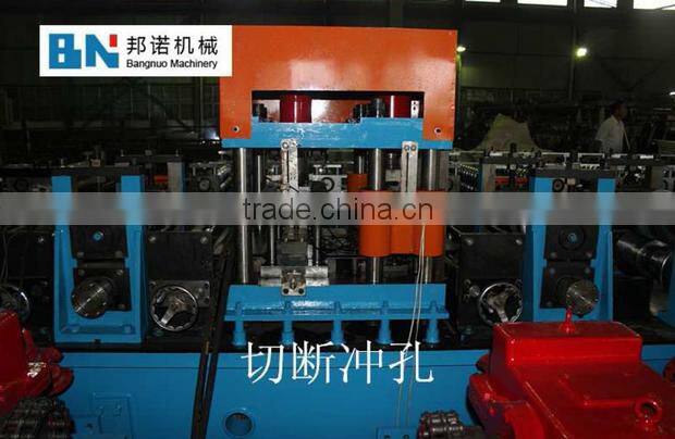 Jiangyin Bangnuo Machinery Co., Ltd. is a professional manufacturer dedicated Color light steel construction, C, Z steel equipment and rolling, bending molding equipment enterprises, with the design and manufacture of various types of steel sheet thickness roll forming production line strength. Pressed tile color steel plate and C, Z purlin products are widely used in various types of large and small industrial plants, warehouses, residential and high-rise buildings. With economic development, building light steel building applications on the growing popularity of the increasing demand for production equipment, production equipment automation requirements are also increasing, company investment, research and development of various types of color steel pressure plate (W) production line and C, Z-beam (purlin) production equipment, the use of simple, improve productivity, reduce production costs. Various existing models of steel pressure plate (W) C, Z-beam (purlin) automatic control production line are at the leading position at home and abroad, with a compact structure, reasonable design, constantly updated progress and much Strut Builders and products the favor and praise.