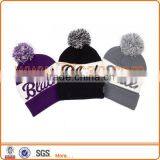 Pom Pom Embroidery Knitted Winter Hat With Braid