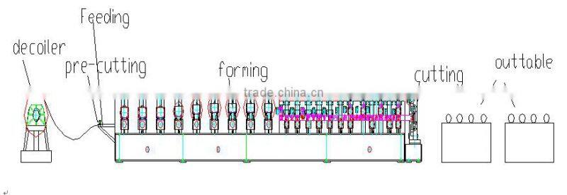 2.: Feeding→Pre-cutting→ roll forming →post cutting