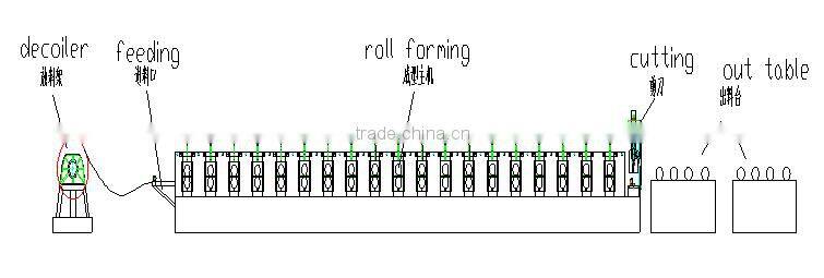 Decoiler→ Feeding→roll forming→post cutting →out table